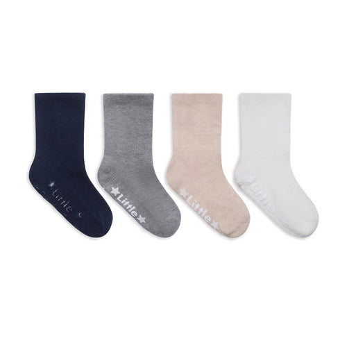 Non-Slip + Stay On Baby and Toddler Socks - 5 Pack in Navy, Mustard & Grey Marl